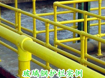 在前文介紹過常見的玻璃鋼材質的護欄包括型材類的護欄與格柵類護欄這兩種。由于玻璃鋼材質的護欄是由眾多的玻璃鋼材質的型材配件組裝而成,故而玻璃鋼護欄的生產工藝指的就是用來組裝護欄的配件的生產工藝。如下圖是一張安裝完成的玻璃鋼護欄圖,組成護欄的配件包括圓管、底座、四通、三通等配件。