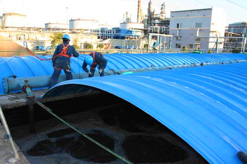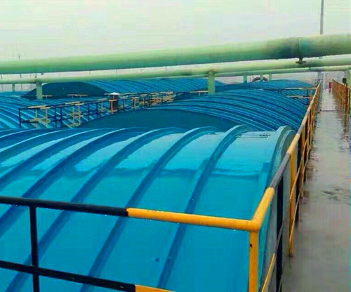 安裝在污水池上,用來收集污水揮發(fā)時產(chǎn)生的廢氣,然后將廢氣集中通過管道排至制定的處理容器中。經(jīng)過凈化處理之后,在玻璃鋼離心風(fēng)機的作用下再排至大氣環(huán)境中。