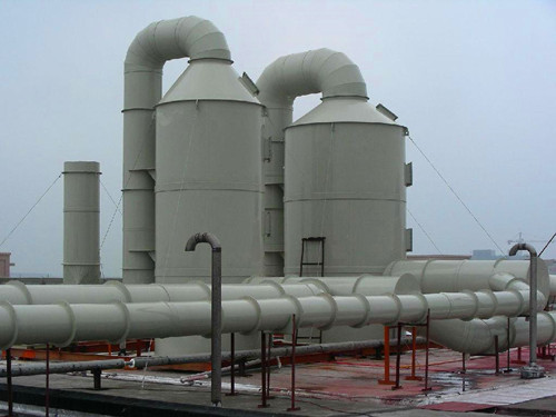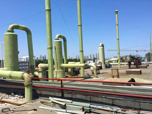 通過洗滌的方式除去氣體中的雜質(zhì),然后通過風(fēng)機將達標(biāo)的氣體排出是廢氣處理的基本流程。本公司生產(chǎn)的玻璃鋼洗滌塔與風(fēng)機均具備非常優(yōu)秀的防腐蝕性能,在工業(yè)生產(chǎn)中使用較多。下面展示一些玻璃鋼洗滌塔的安裝示例圖。